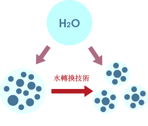 近年來,人們得知飲用分子團較小的水即分子團水的話,人體的代謝機能會得到改善,從而開發出各種縮小分子團的方法。